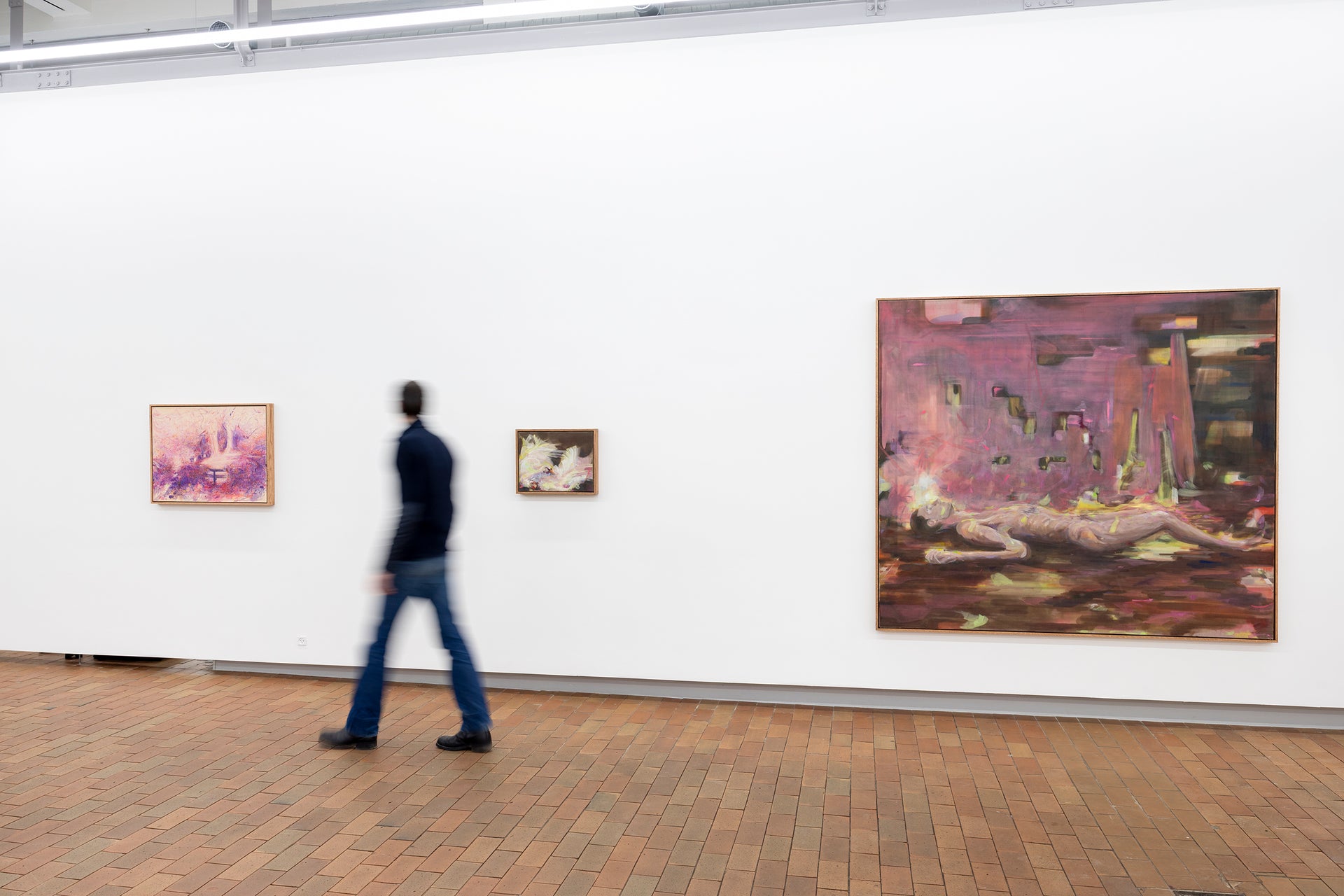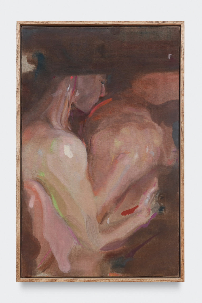 In Hilbert’s most recent works, his sensorial openness has evolved into an exploration of queerness, intimacy, and male companionship, where bodies, desire, and friendship inhabit the landscape itself. Drawing on art historical references and rural motifs, his paintings evoke cultivated ground as sites of longing, care, and fertility, while their titles and imagery invite an examination of words and forms with multiple meanings. The works carry several interpretive layers and embrace subtle contrasts, crystallizing both the graceful and the harrowing, the trivial and the extraordinary, the ephemeral and the vital, the hidden and the evident, in a uniquely curious and sensitive manner.