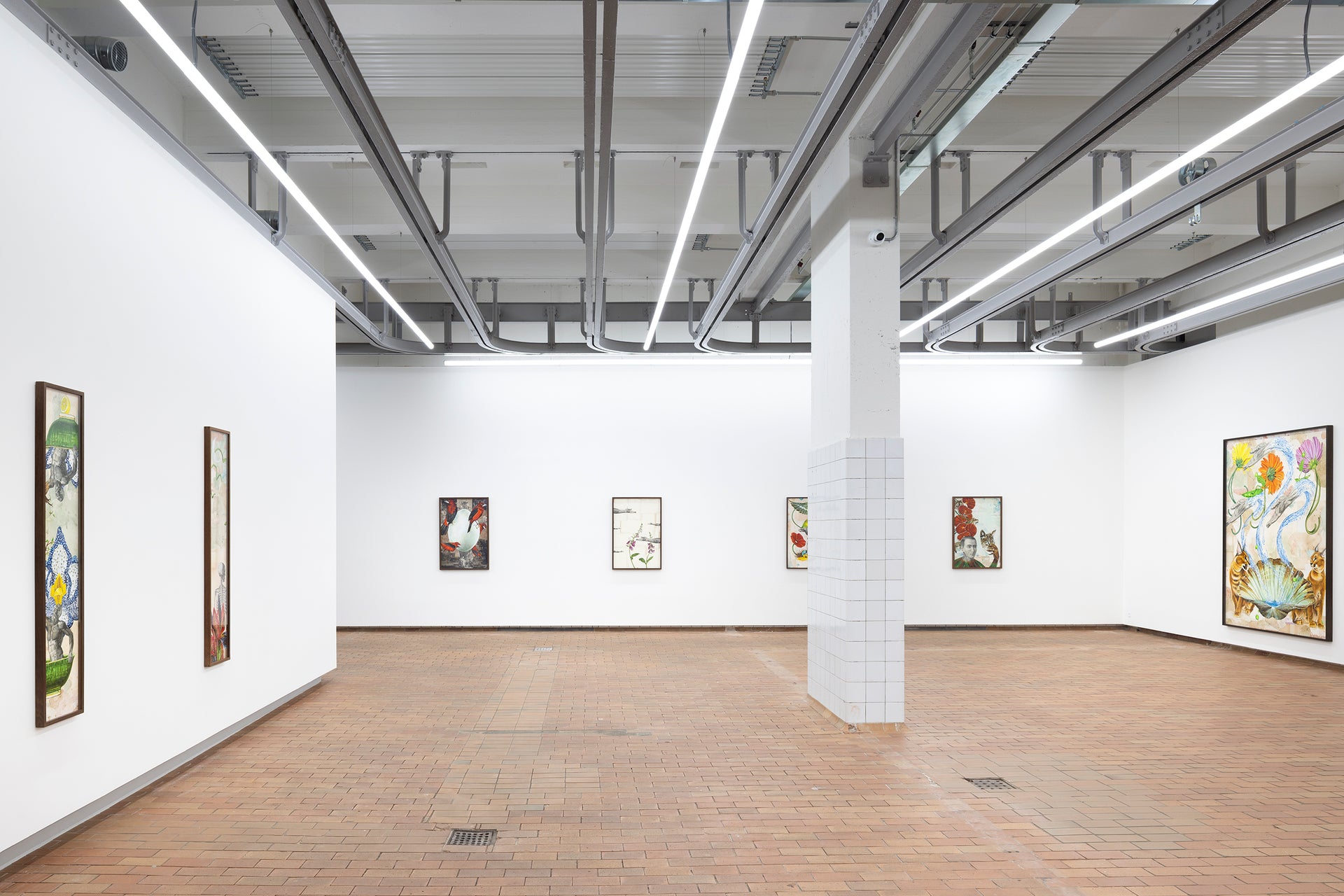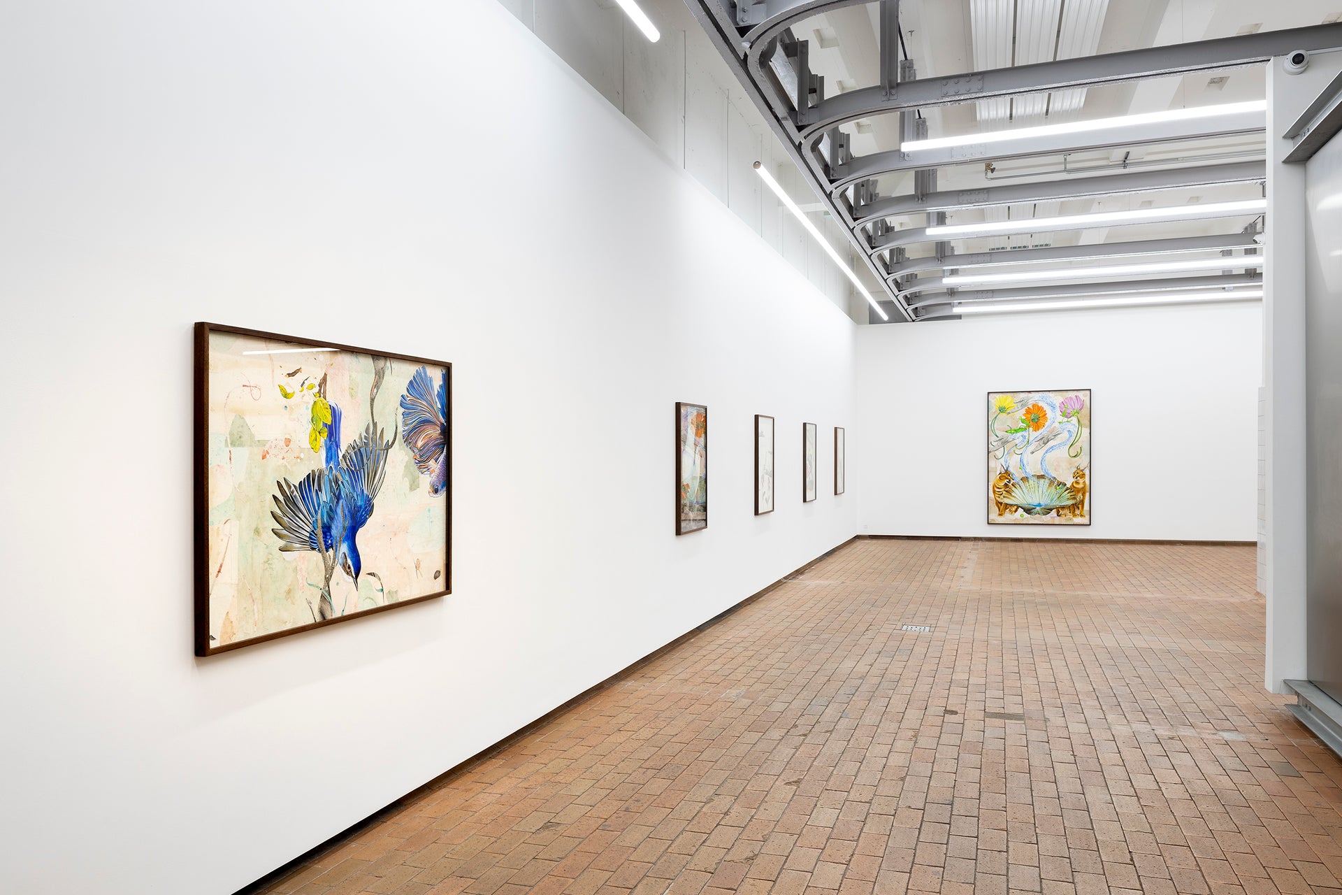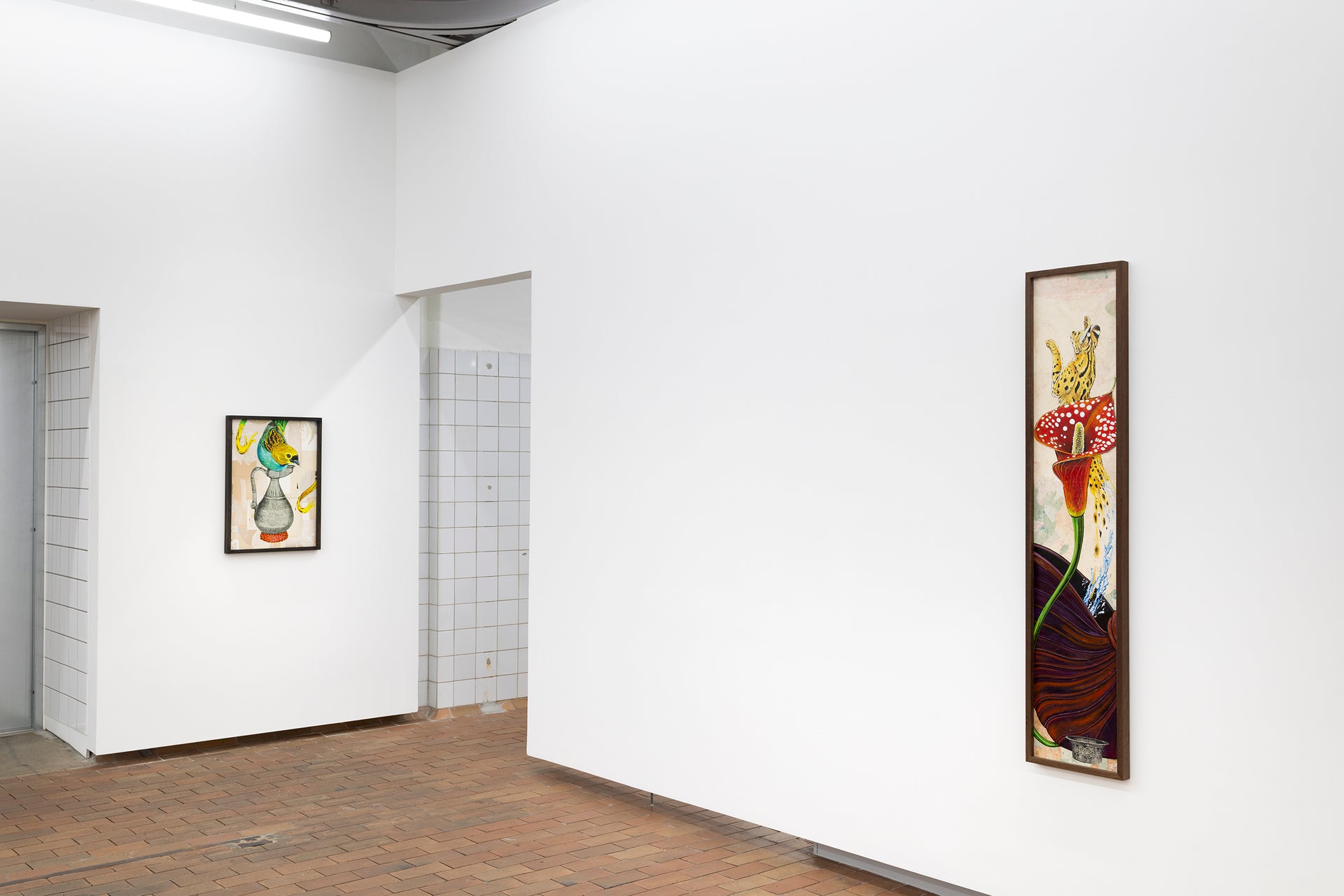 In Troels Carlsen’s exhibition Alt flyder – Everything flows – nothing is permanent, and everything is connected. Flora and fauna are quite literally intertwined in Carlsen’s large tableaus, often painted with acrylics on intricately collaged archival material sourced from antiquarian bookstores.